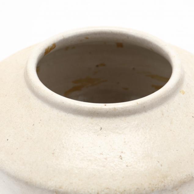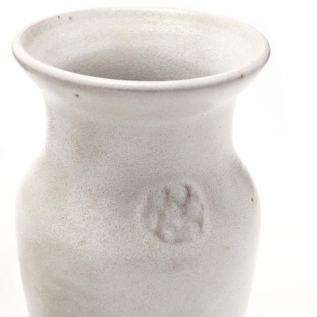 To include: a dogwood vase (7 5/8 in.); a shoulder vase (5.25 x 6.75 in.); two similar bud vases; a low shoulder vase (4 in.), earthenware, all with Ben Owen Master Potter stamp.