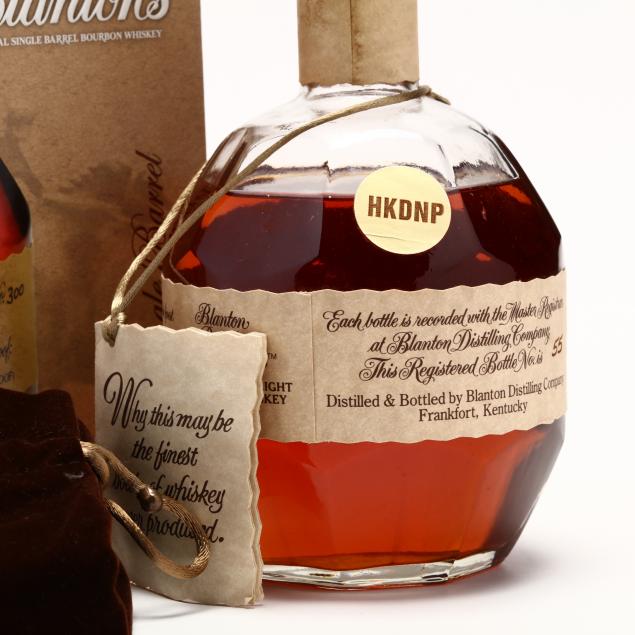 NV, Blanton's Single Barrel Kentucky Straight Bourbon Whiskey, Distilled & Bottled by Blanton Distilling Company, 46.5%, dumped on 1-23-89 from barrel no. 146 on rick no. 26 (warehouse H), bottle no. 55, meant for Hong Kong market, ms, includes original hanging tag, sealed, includes velvet bag (1 750 ml)