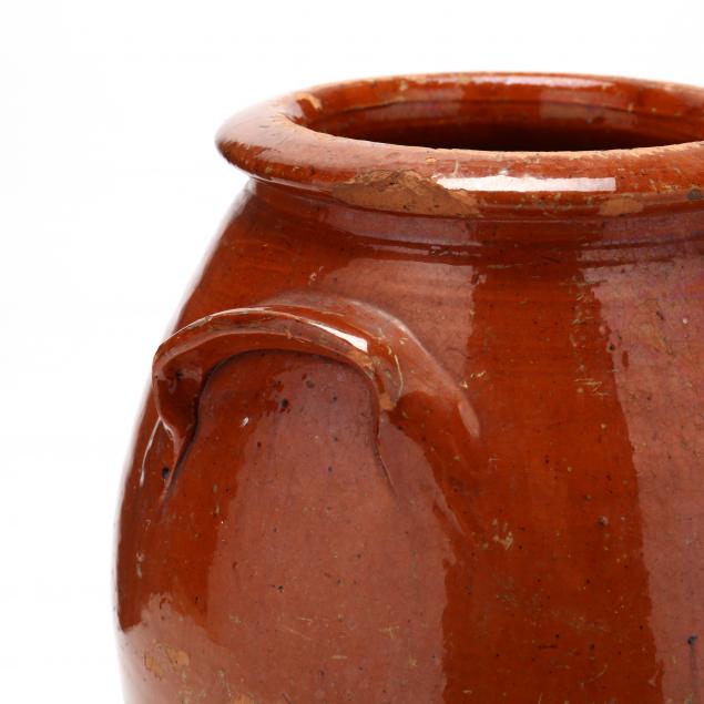 Poor glaze adherence to the clay, peeling, chips to all high points; nevertheless a desirable example of transitional pottery.