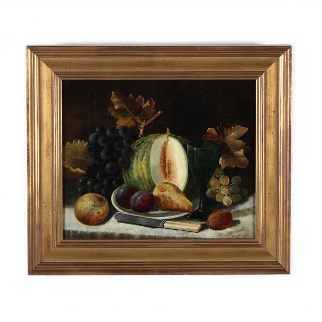 Oil on canvas, signed lower right, retains Edwin C. Ahlberg Antiques label to verso, presented in a later gilt frame.