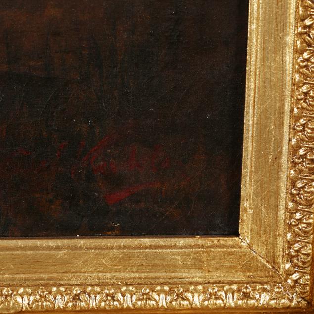 Oil on canvas, signed at lower left, presented in a period gilt composition frame.