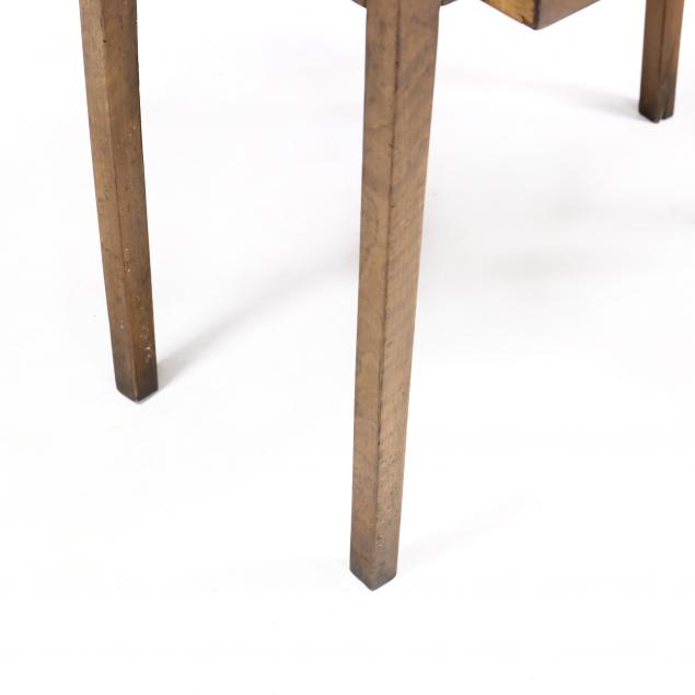 Private Collection, Oak Ridge, North Carolina Slight warp to top (raised at center); separation crack to top; old surface stains and scratches; surface mold to interior; old edge chips to legs.