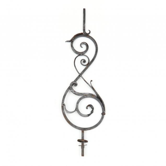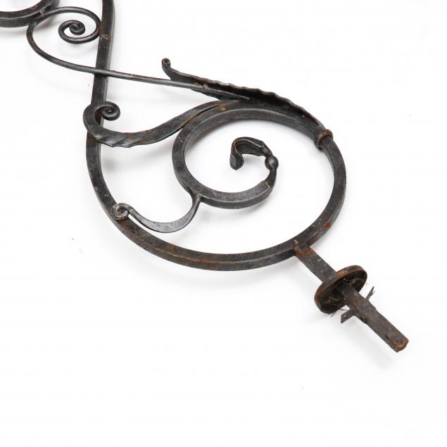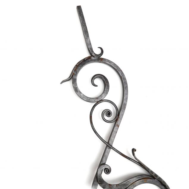 Late 20th century, Russian, dark silver painted iron 'S' shaped scrollwork with acanthus leaves, base with disc covers.
