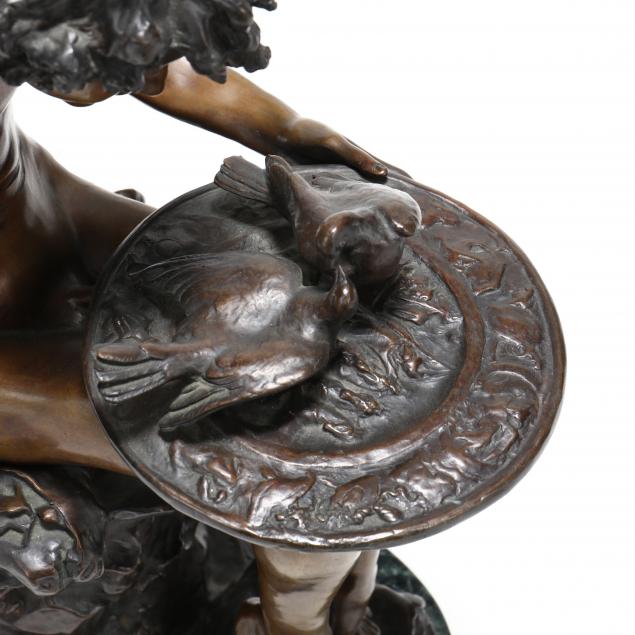 From the Collection of Mr. and Mrs. Harrison Smith, Salisbury, North Carolina J. A. Injalbert was a pupil of Augustin-Alexandre Dumont. Among his awards are the prestigious Prix de Rome in 1874 and the Grand Prix at the Exposition Universelle of 1889 (and in 1900 was a member of the jury). Injalbert was made an officer of the Légion d'honneur on the day of the inauguration of the Pont Mirabeau in Paris; and in 1905, he was made a member of the Institut de France; and in 1910 promoted to Commander of the Légion d'honneur. He was also an influential arts instructor at the Académie Colarossi and the École des Beaux Arts.