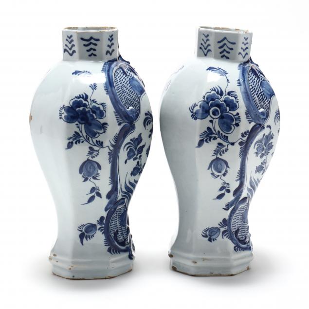 Private Collection of European Ceramics and Dutch Delftware, South Carolina Rim and base flakes; nicks to a few high points; flake to rear of one vase