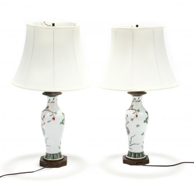 A Pair of Chinese Export Porcelain Table Lamps
