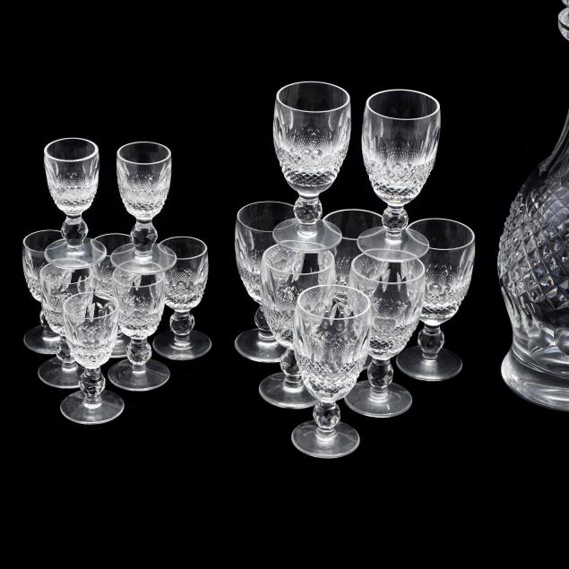 (21) pieces, to include: (8) cordial stems (3 1/4 in.); (8) sherry stems (4 1/4 in.); decanter with stopper (13 1/4 in.); large brandy stem (5 1/4 in.); tumbler (3 1/2 in.); tall tumbler (4 1/4in.); "Alana" jigger (2 1/4 in.); all signed.