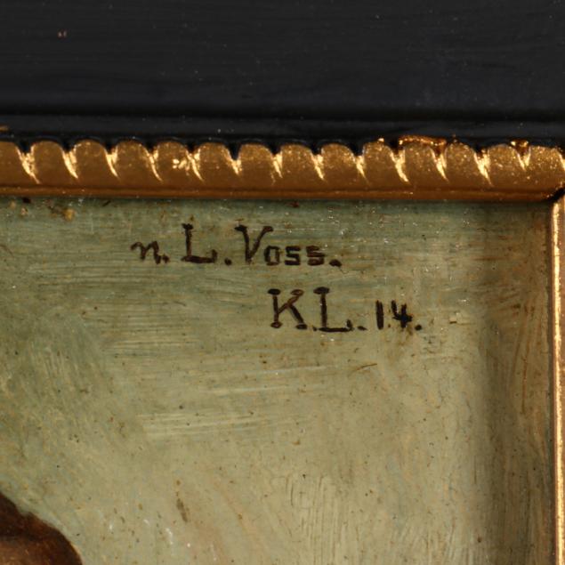 Oil on board, circa 1900, one signed and inscribed "Friedrich Meister / München," presented in uniform black, another signed and inscribed "n. L. Voss / K. L. 14," presented in uniform black frames with gilt border.