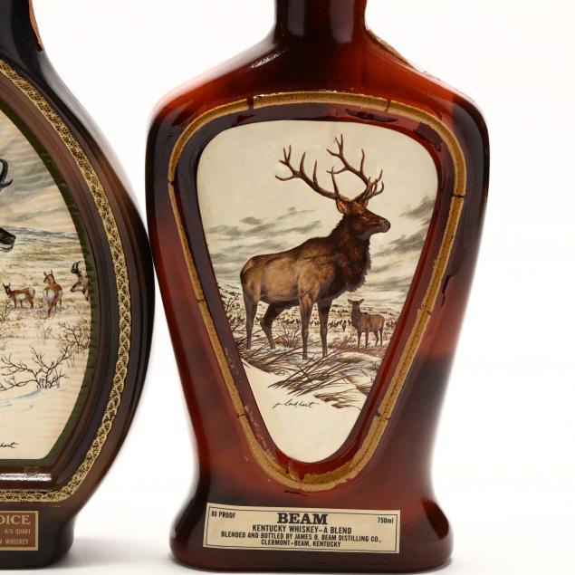 NV, Jim Beam Kentucky Straight Bourbon Whiskey, 40%, 1981 bottling, full bottle, paint is chipping on bottle, sealed in an Elk decanter (1 750 ml)