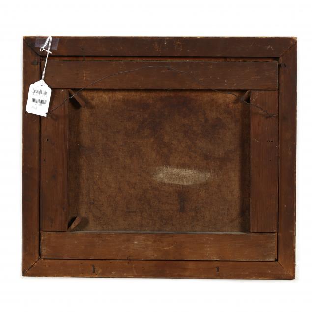 Nicotine staining; stable craquelure; minor rubbing to edges of canvas from frame with some associated paint loss; faint stretcher marks.