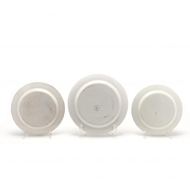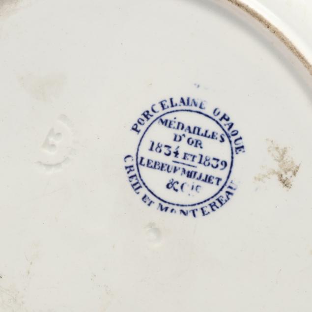 19th century, black transfer ware, to include: (15) battle scenes, biblical motifs, architectural sites, most marked "P. & H. Choisy" (8 3/8 in.); (7) plates stamped "Creil" (9 3/4 in.).