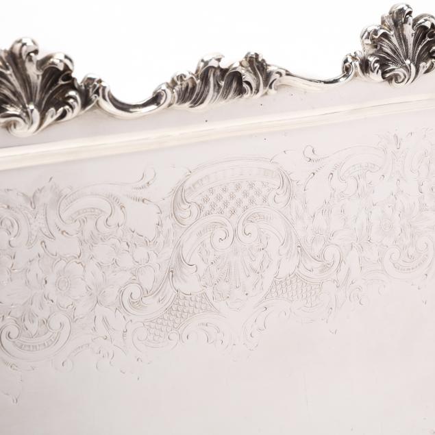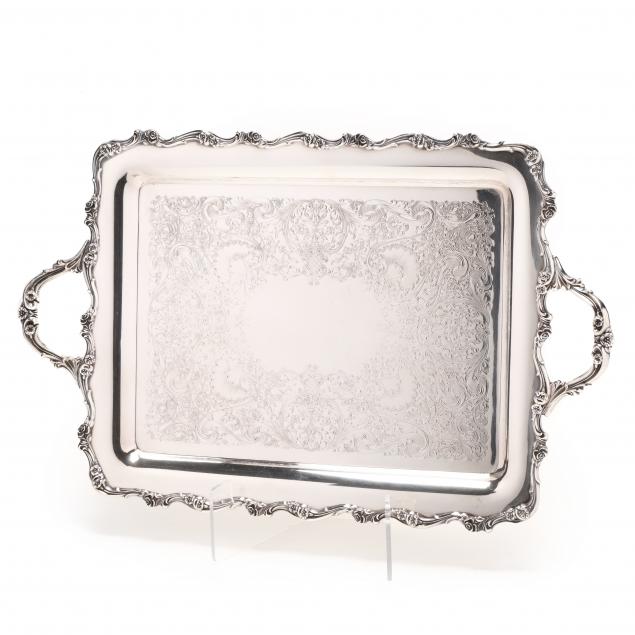 The first of long rectangular form (26 x 12 1/2 in.); the second a large circular salver (16 1/2 in. diameter); and the third a rectangular tray (23 1/4 x 14 1/2 in.).