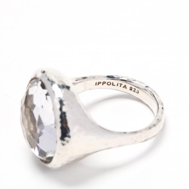 Centered with a faceted round rock crystal quartz, bezel set in a hammered silver mount, stamped Ippolita 925 P.