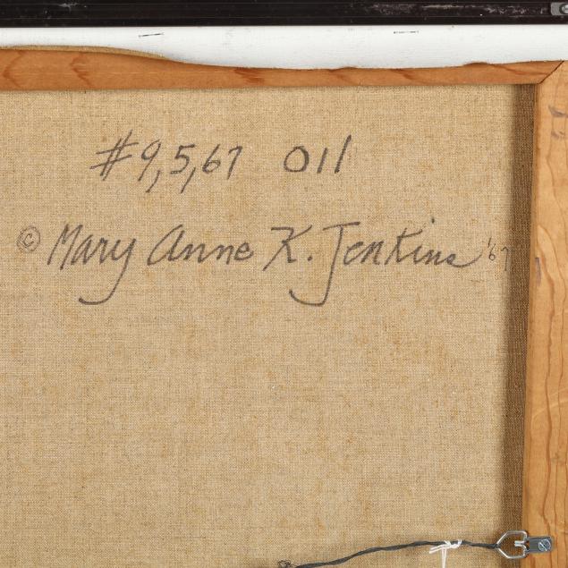 Private Collection, Washington, North Carolina Mary Anne Keel Jenkins was born in Stokes, North Carolina, in 1929. She moved with her family to Greenville in 1932. After a year at East Carolina University (1948-1949) she left to study at the Ferree School of Art (closed in 1954) in Raleigh where she earned the Diploma in Fine Art in 1953. After graduation she found employment at the Raleigh Times as display advertising account executive. After her marriage in 1954, she was determined to develop a career as an artist. She succeeded and exhibited in numerous shows throughout her prolific five decade career. The Greenville Museum of Art showcased a retrospective of her work in 1999-2000.