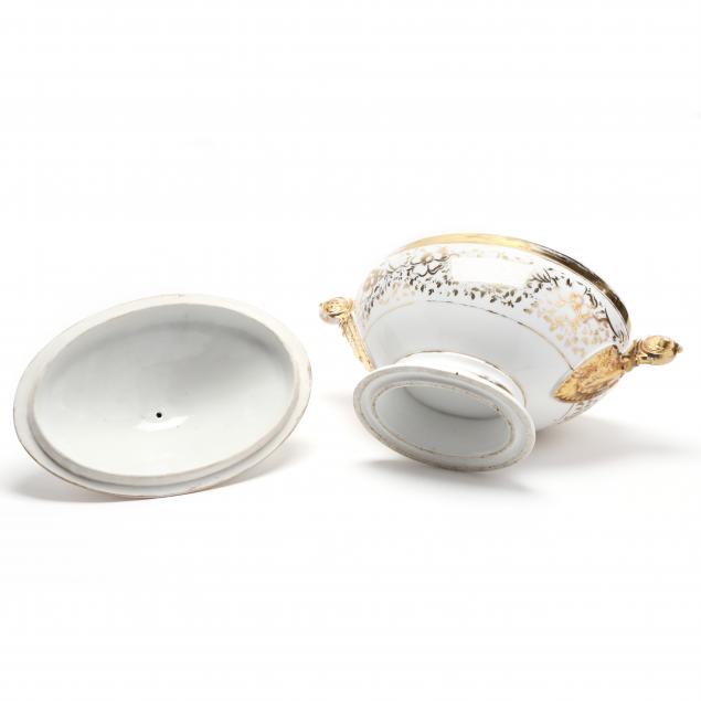 From the Collection of Winslow Goins, Rocky Mount, North Carolina Some cups do not have an gilt interior: plates are without chips or hairlines but many have wear to the gilt especially the center flower and gilt bands,