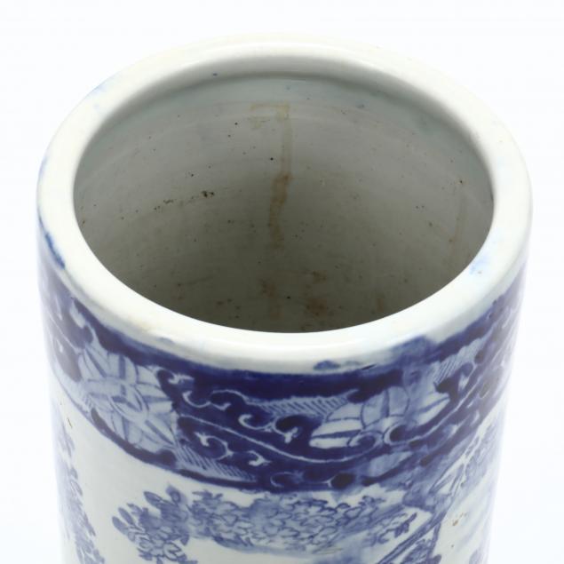 20th century, decorated in blue and white, with exotic birds amid prunus blossoms.