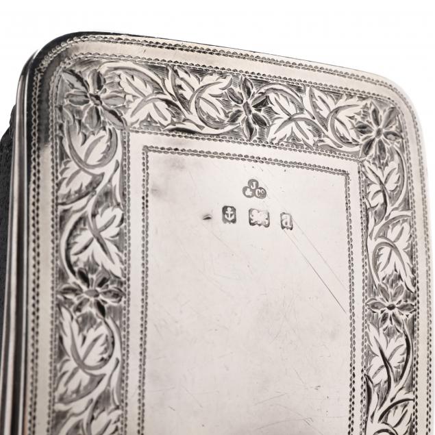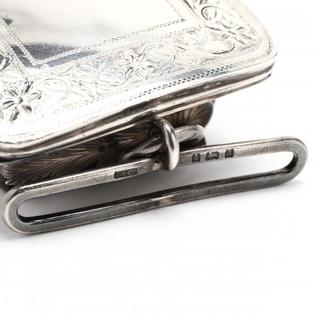Silver plaque with mark of Jacobs & Co., Birmingham (1900), leather case with applied decorative hallmarked silver panels to which are attached hallmarked silver buckles, affixed to the center plaque is an ornate gold tone cypher for Queen Victoria,