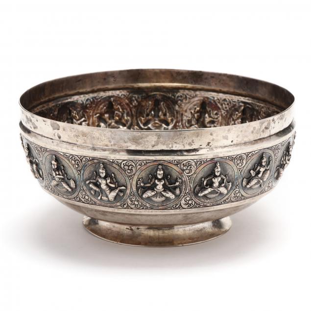 Retailed by A. Bhicajee & Co. of Bombay, early 20th century, .900 silver standard, the waist decorated with sixteen figural medallions amidst foliate scrolls.