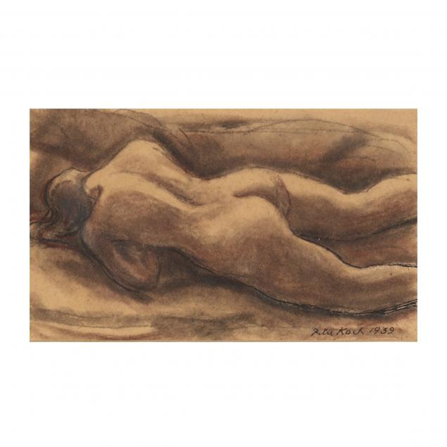 Mixed media on paper, signed and dated 1939 at lower right, matted and framed under glass.