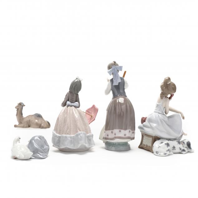 #5210 girl with parasol; #5466 girl on telephone; E-13J girl with broom; ducks; camel.