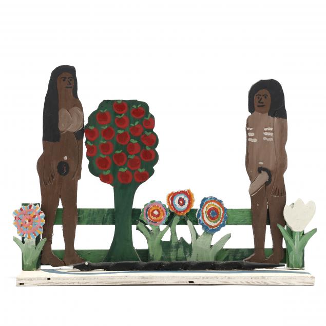 James Harold Jennings (NC, 1931-1999), Folk Art Adam and Eve in the Garden