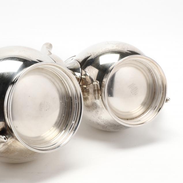The five piece service including a coffee pot (9 in.), teapot, sugar bowl with cover, creamer and waste bowl. No monograms.