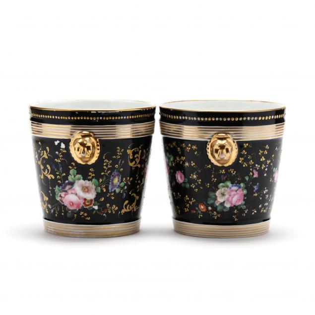 Late 19th century, black body painted with blossoms and trailing gilt leaves, unmarked.