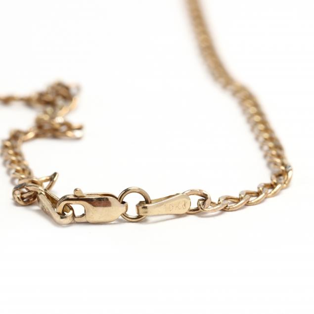 Necklace styles to include box link and curb link, each completed with a lobster clasp, stamped 10K.