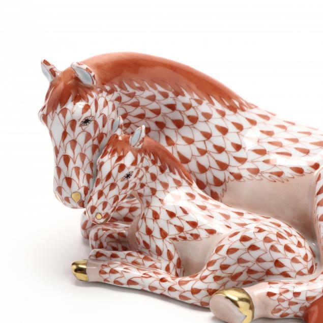 Rust fishnet, a First Edition mare and foal #15560 (2 1/2 x 5 in.) and a unicorn upright (4 1/2 in.).