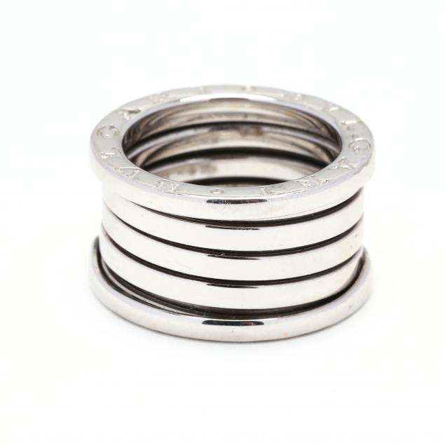 In a coiled spring ring design, signed and stamped 750 / Made in Italy and 53 for ring size, with Italian Registry mark.