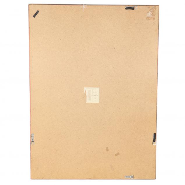 Late 20th century, gilt wood and composition, figural relief scenes inspired by Assyrian lion hunt scenes similar to those of Ashurbanipal (668–631 BC), surrounding a rectangular beveled mirror, labeled to verso.