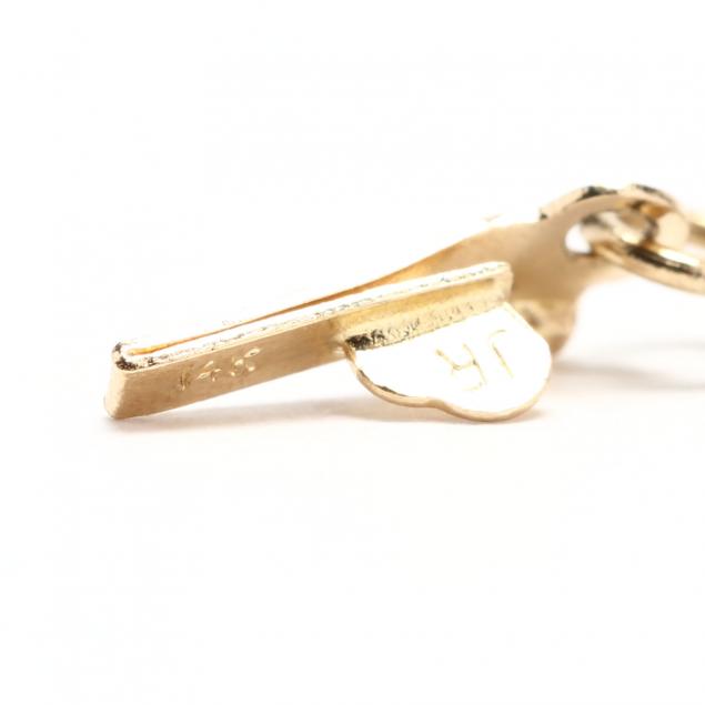 To include: a grape cluster motif pendant with post set round cultured pearls, emerald and colorless stones suspended from a round braid design chain completed in a box clasp with safety catch, clasp stamped 585 14ct (pendant 5/8 in.; chain 16 in.); a carved onyx oval cameo with walking horse, suspended from a rope twist design chain, completed in a barrel clasp with safety catch, pendant stamped 14KT and with Italian registry mark, clasp stamped 14K (pendant 1 in.; chain 20 in.); a gem-set flower motif pendant with emeralds and central full cut round diamond accent, suspended from a rope design chain completed in a spring ring clasp, pendant stamped SPCL 14KP and clasp stamped 14K and with maker's mark B (pendant .5 in.; chain 19 in.); and a full cut round diamond pendant weighing approximately .14 carat (J color, I2 clarity) suspended from a rope design chain completed in a spring ring clasp, clasp stamped 14K and with maker's mark EL (pendant 7/16 in.; chain 20.5 in.).