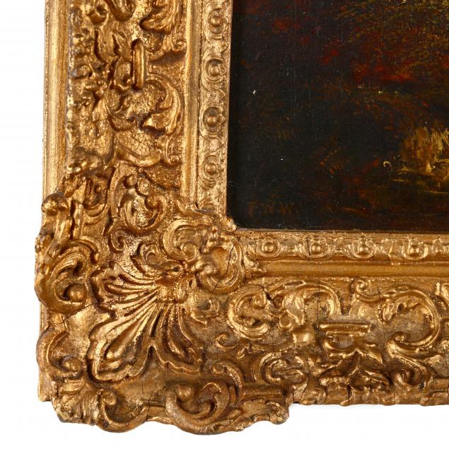 Oil on canvas, monogrammed at lower left, presented in an antique gilt composition frame with gallery plaque.