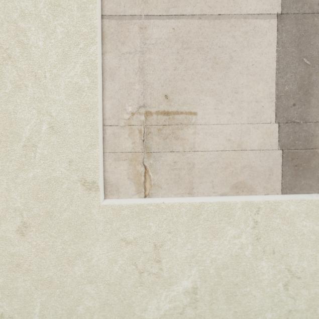 The first an ink and watercolor on paper, unsigned, matted and framed under glass (Frame dimensions 23 3/4 x 15 1/4 in.); the second an ink and watercolor on paper, matted and framed under glass (Frame dimensions 27 1/2 x 22 1/2 in.).
