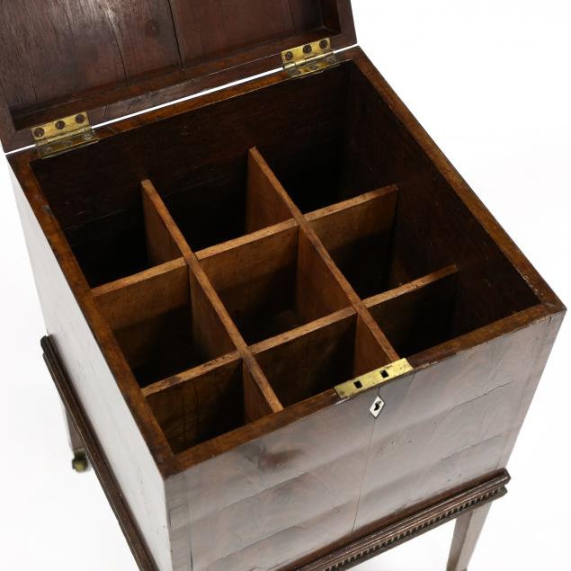 From the Collection of Chelsea House Antiques, Durham, North Carolina Shrinkage crack and fill to lid; later dividers to interior; some later reeded trim to base; no key.