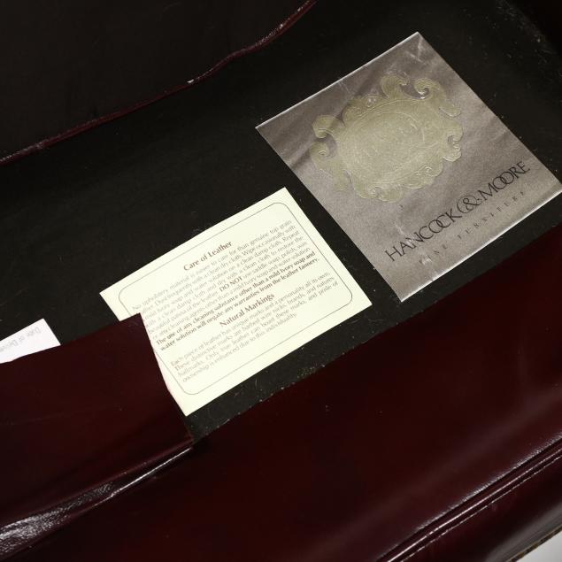 Creases to leather from use; scuffs to leather on stiles under arms; tight surface crack to leather on left arm.
