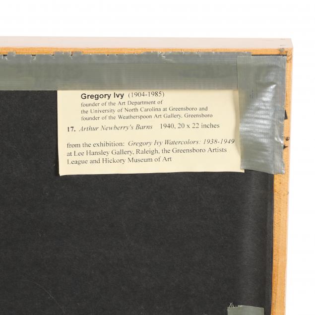 Gregory Ivy Watercolors: 1938-1949, Lee Hansley Gallery, Raleigh, North Carolina, the Greensboro Artists League, and Hickory Museum of Art, 1995.
