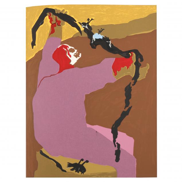 (8) screenprints in color by Lawrence with accompanying text to make complete bound volume, 1983, hand signed by Lawrence, John Hersey, and Robert Penn Warren and numbered 95 from an edition of 1500, printed at The Studio Heinrici Ltd., New York, published by the Limited Editions Club, New York., leatherbound and in original cloth slipcase.