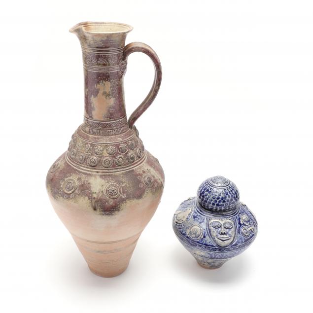 Tevia Clark (NC), Studio Pottery Romanesque Ewer and Jar