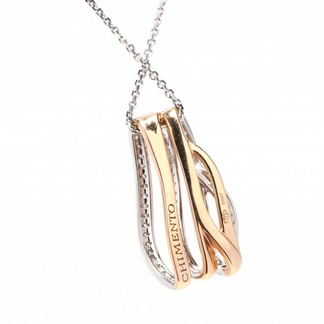 The yellow gold wave motif pendant with full cut round diamonds weighing approximately .30 total carat (G-H color, VS-SI clarity) set in white gold, suspended from a white gold oval link chain with sizing bead stations and maker's monogram, stamped with maker's mark, 750, numbered 24967, and with Italian registry mark.
