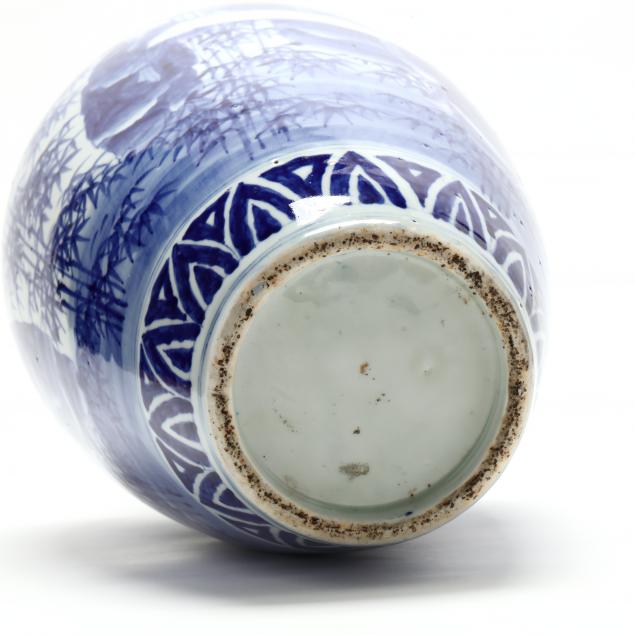 A Chinese Porcelain Blue and White Vase with Sages in Bamboo Grove