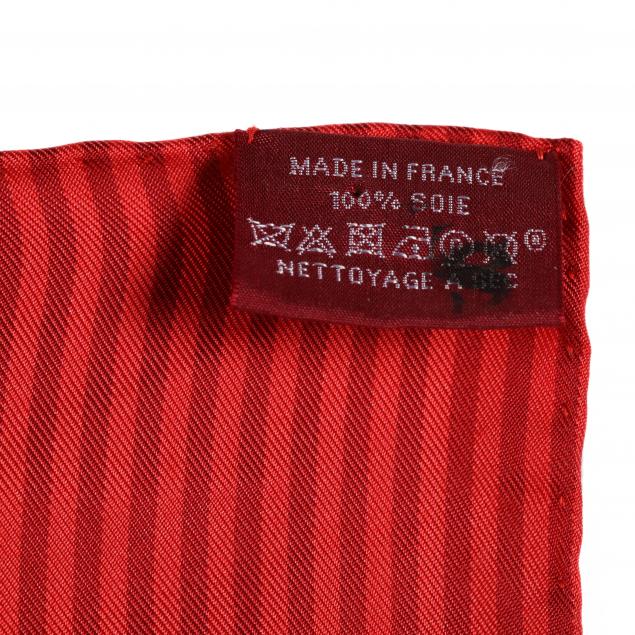 A classic design re-invented with horizontal stripes in a colorway of mauve and red on a white field, with care tag.