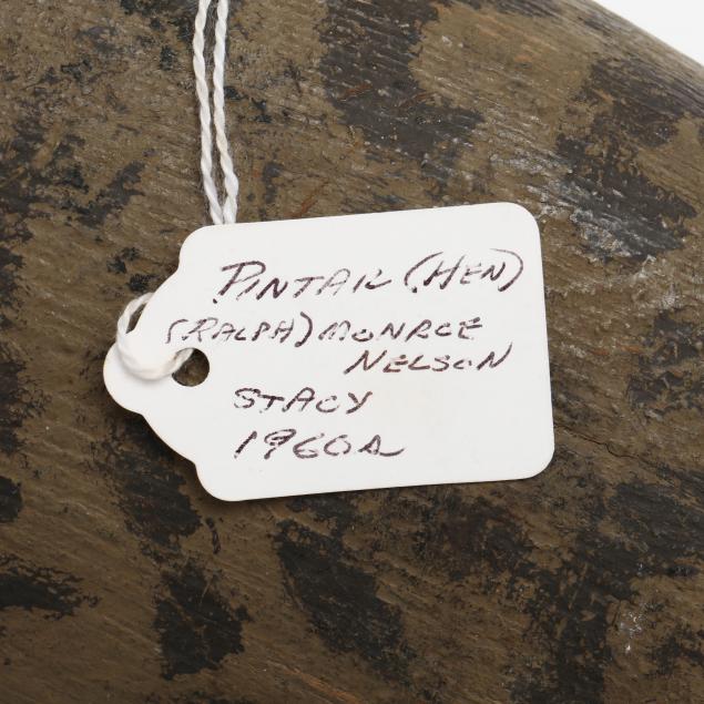 Ralph Monroe Nelson (1929-1987) Stacy, North Carolina. Ralph was a great all around waterman but his first love was duck hunting. His birds exhibit a V-bottom or heavy chine and they are not often found. This is currently the only hen pintail known.