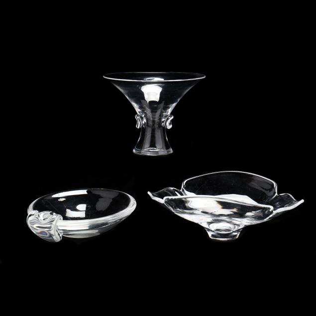 New York, mid 20th century, including a George Thompson designed bouquet vase (5.25 in.); a John Dreves nut dish (6.75 in. diameter); and a Donald Pollard