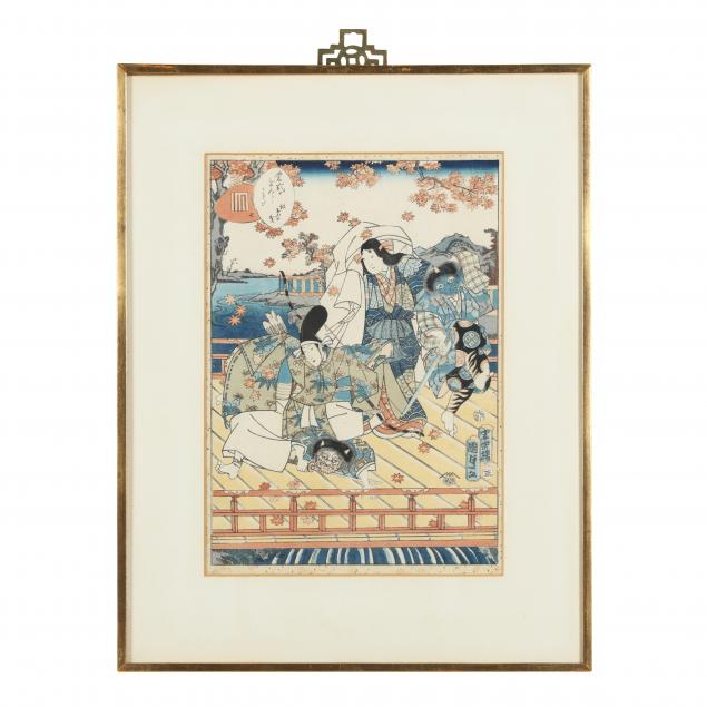 Edo period (1615-1868), circa 1857, ink and colors on paper, woodblock print, published by Tsutaya Kichizo, these two prints illustrating chapters 7 and 8 with the