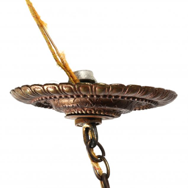 Samson porcelain Meissen style figure, late 19th century marks, set within an ormolu copula with vine and floral decoration with five electrified light surround, underside with faience mount and artichoke finial; includes ceiling mount and chain.