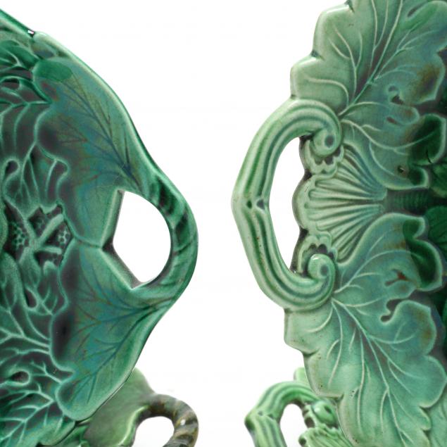Two round "Copeland" (9 1/4 in.) (surface scrapes); three oval form "Wedgwood" (one broken and glued) (10 3/4 in.); three with handles; total (10). A Vietri pitcher and matching basin.