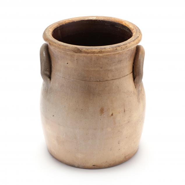 Second half 19th century, two gallon size as marked, pear shape stoneware with wide lug handles and cobalt decoration, Albany slip glazed interior.