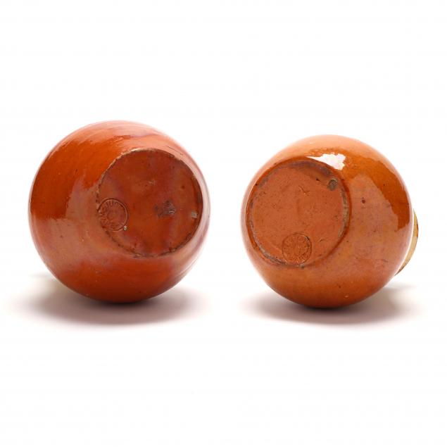 1940s, lead glazed earthenware, the form featuring an elongated neck above a bulbous body, stamped,