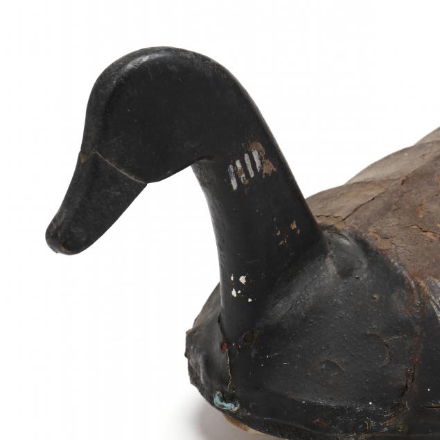 Clarence Lewis (1914-1992), Stacy, North Carolina. This nice Core Sound brant has very nice paint application on the back and to the tail. It is in a graceful swimming posture; branded CL.